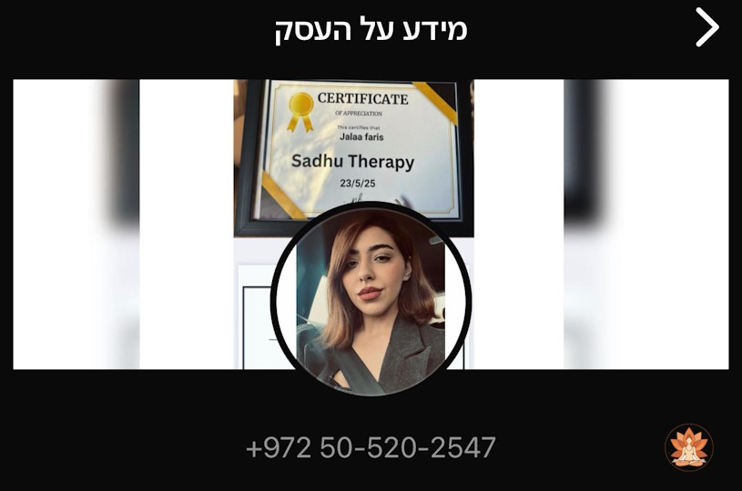 ✅ המטפלת ג׳לאא – מטפלת בלוחות סאדהו, סטודנטית לפסיכולוגיה, ומתמחה באימון רגשי ומנטלי.